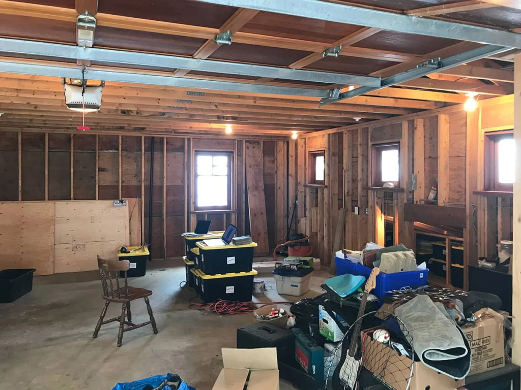 The owner wanted a cleaner, more organized garage that could serve multiple family functions. The current setup was cluttered, unfinished, and not well-lit.
