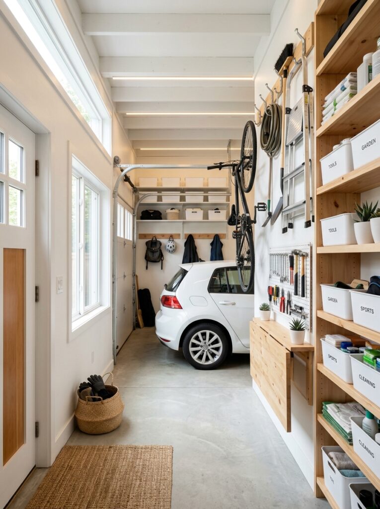 Pro Tip: Use vertical bike hooks to free up floor space.