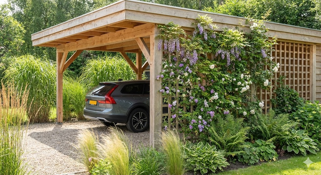 If a structure feels too stark, let nature take over. Planting a row of tall shrubs or installing a trellis with climbing vines along the side of a carport adds privacy and softens the hard architectural lines. It connects the structure to the landscape, making it feel organic.