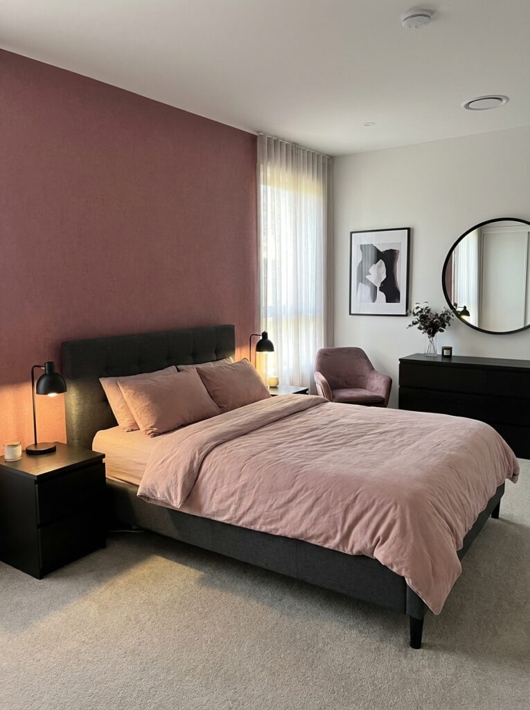 The right pairing ensures your pink bedroom stays adult-friendly.