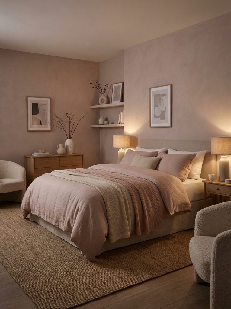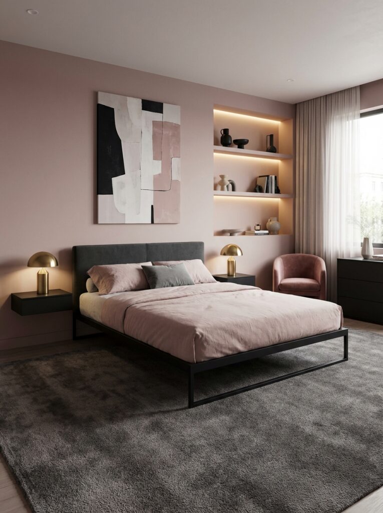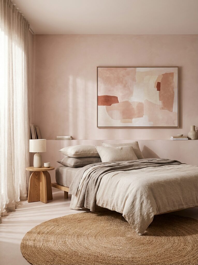 Pink evokes warmth, softness, and comfort. The trick for an adult bedroom is to balance it with neutral or earthy tones, clean lines, and modern textures.