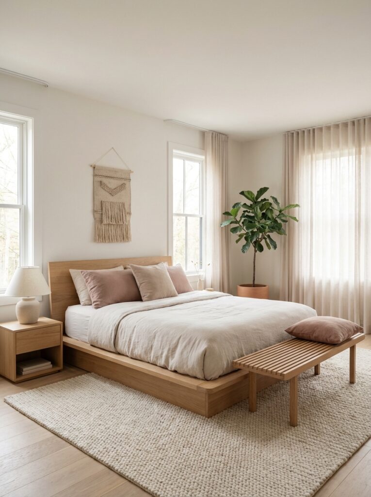 - Peach + Light Wood → Soft and natural