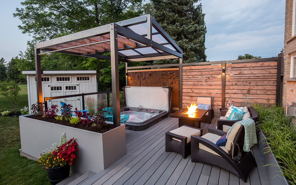 A sleek privacy screen makes this deck feel intimate and secluded without sacrificing style.