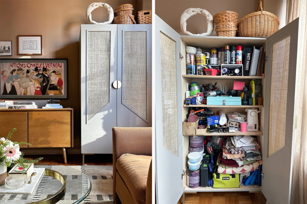 A hidden pegboard system keeps the same functionality while improving aesthetics.