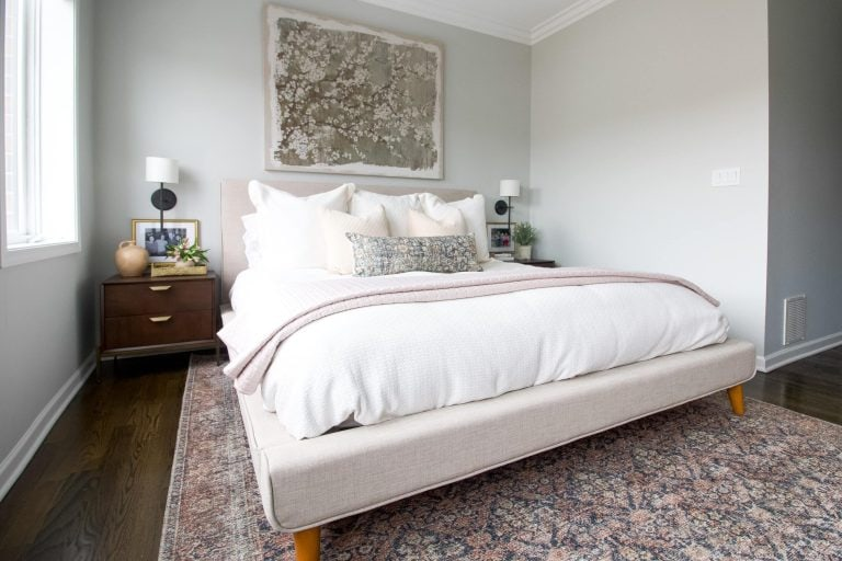 When we first photographed my mom’s bedroom, one side looked completely finished—bright, styled, and polished. The other side? Not so much.