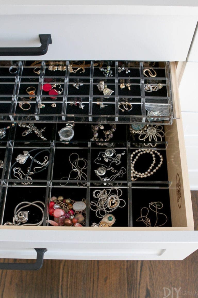 - Jewelry drawers designed specifically to keep everything organized and visible